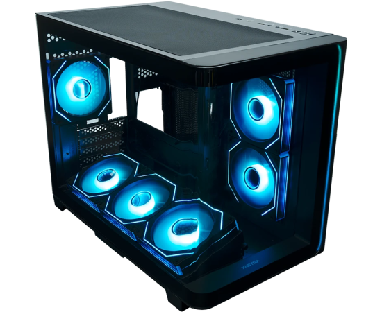 Корпус XASTRA QR600M 6ARGB C10-UC (QR600M-6FM12A-C10-UC-L) Black mATX/Aquarium/Curve Glass/Led Strip/6x120mm ARGB PWM FM fans/ Argb+PWM HUB 10port