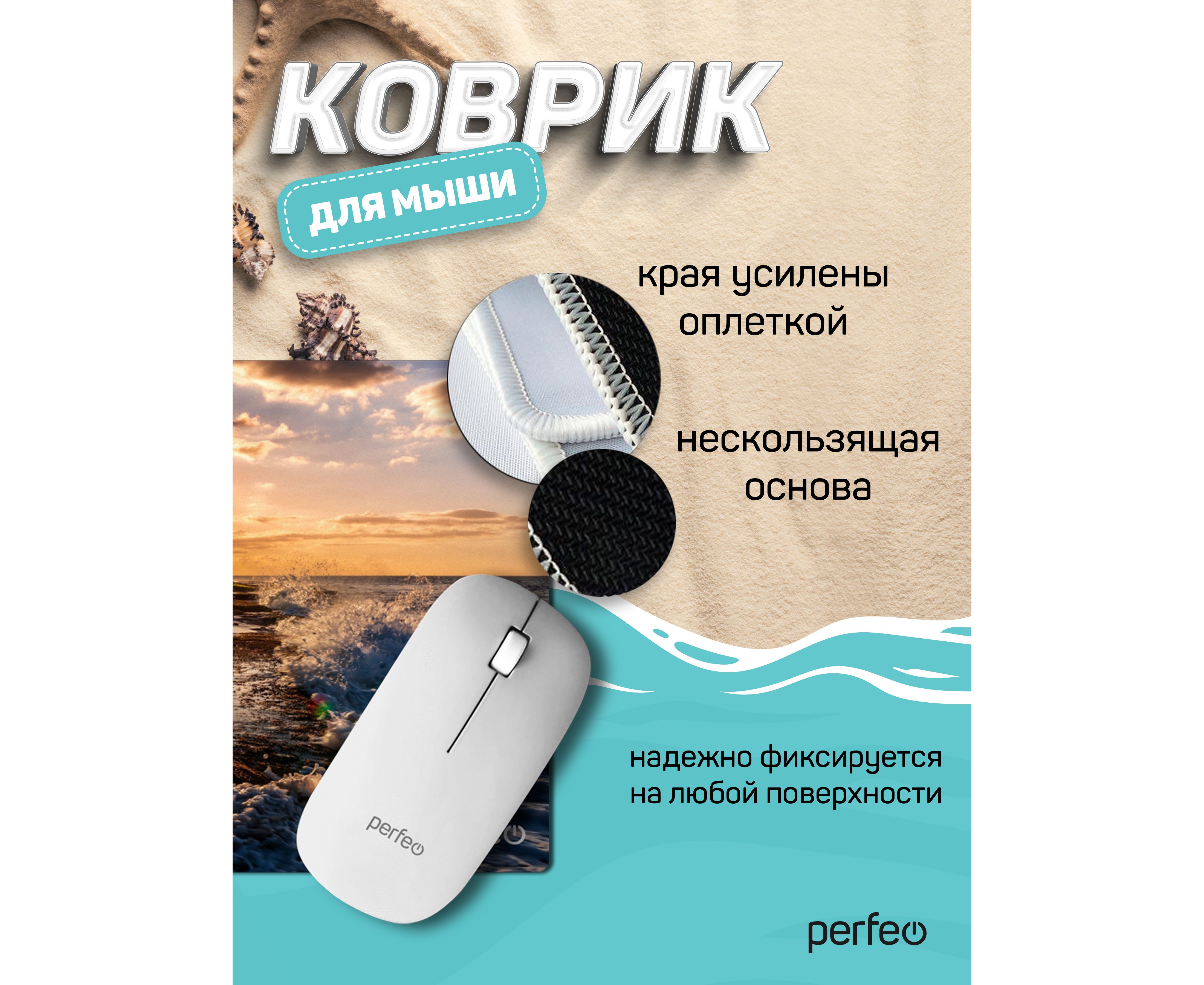 Коврик для компьютерной мыши Perfeo "Пляж", Рис.3 (180*220*2 мм), ткань+резиновое основание