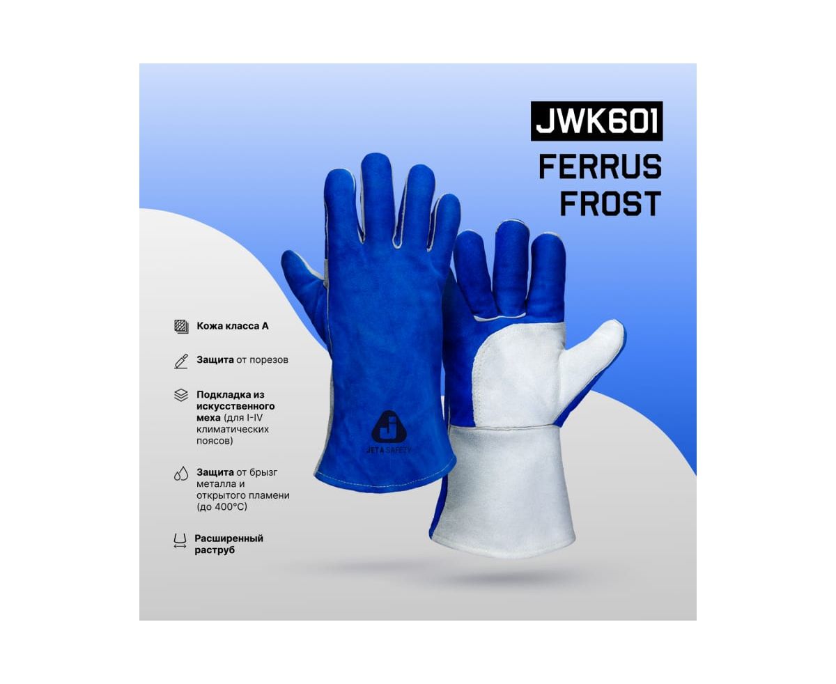 Технические характеристики перчаток сварщика Jeta Safety Ferrus Frost с крагой цвет синий/серый JWK601-XL