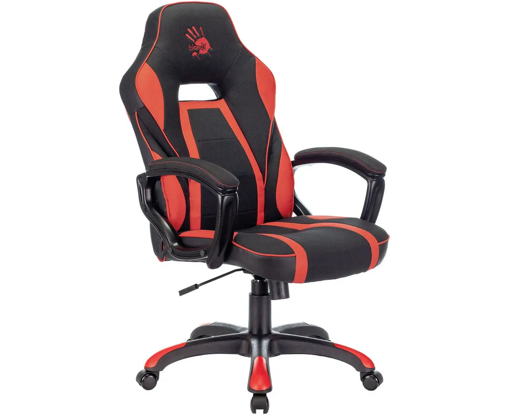 Кресло A4TECH Bloody GC-250 игровое на колесиках, искусственная кожа/ткань, черный/красный