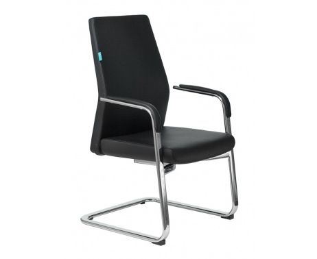 Кресло Бюрократ _JONS-LOW-V/Black на полозьях черный кожа