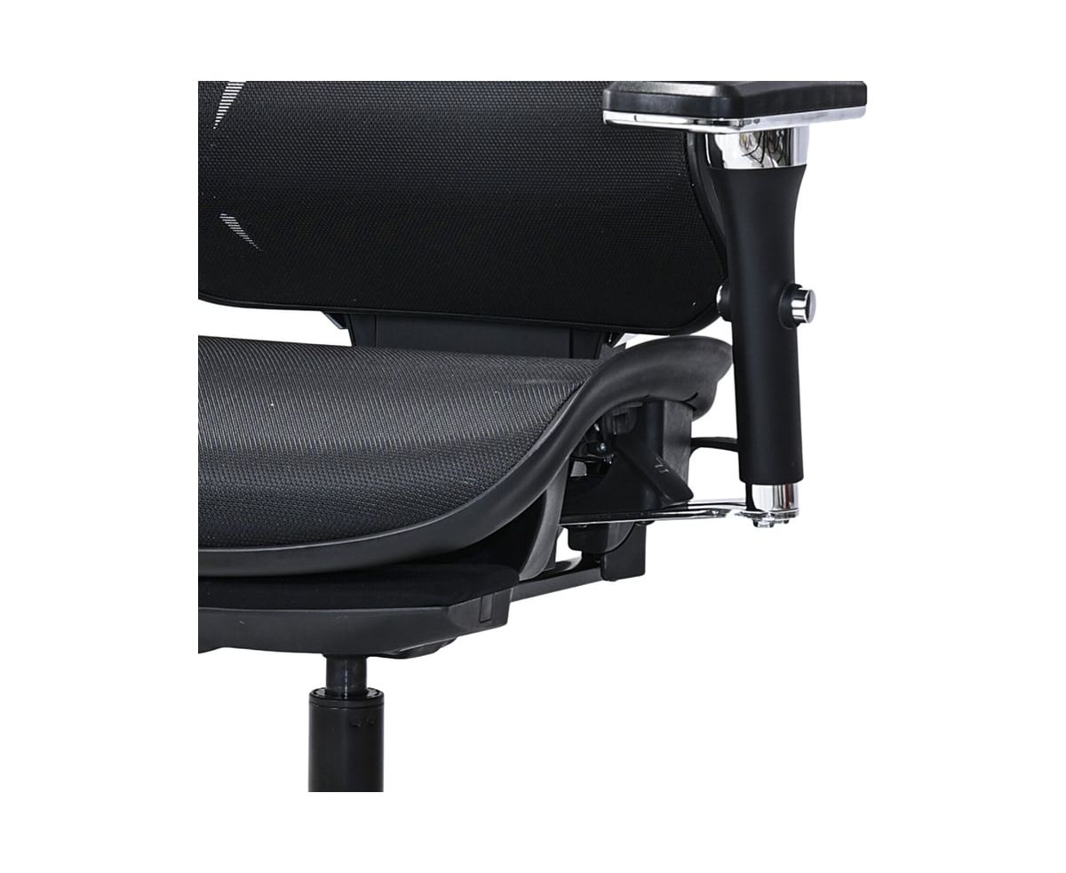 Кресло выполнено из материалов высокого качества. Обивка кресла из сверхпрочной сетки легко чистится и долго сохраняет привлекательный внешний вид. Эргономичный дизайн разработан с заботой о вашем здоровье. Регулируемые подголовник и поясничная поддержка обеспечат оптимальное положение корпуса, способствуя снижению напряжения в области шеи и спины. Регулируемые 4D пластиковые подлокотники позволят с удобством разместиться в кресле. Наличие телескопической подставки для ног не только помогает создать удобное положение для ног, но и способствует улучшению кровообращения, снимая напряжение с мышц и суставов. В основании – надежное металлическое пятилучие и газлифт 4 класса. Максимальная нагрузка – 125 кг.