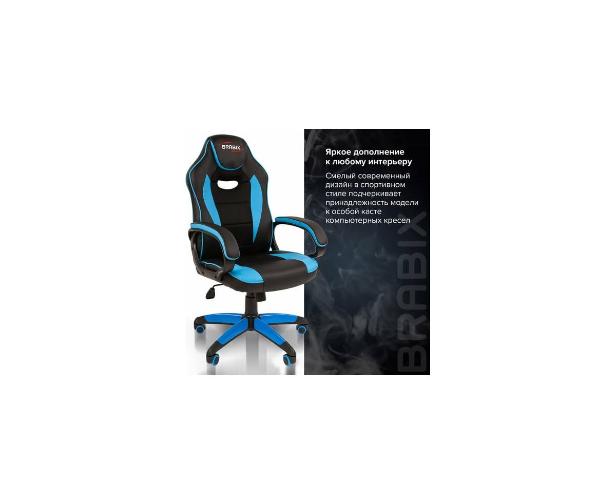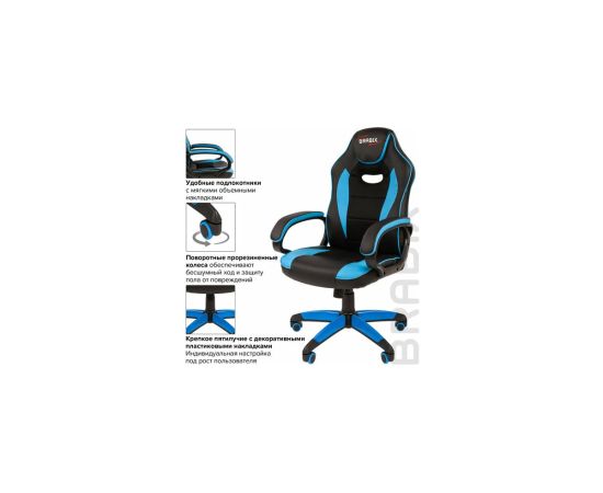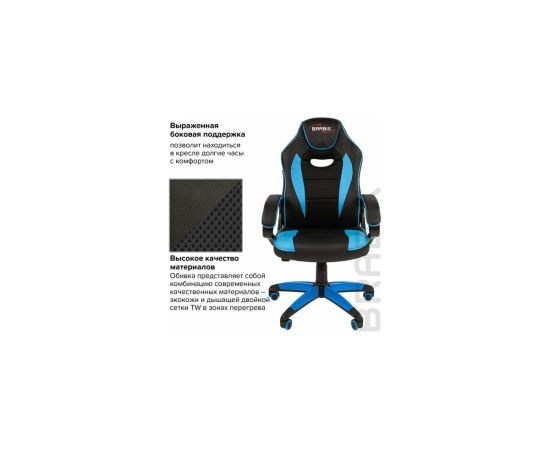 Компьютерное кресло BRABIX Blaze GM-162, TW/экокожа, черное/голубое 532578 предназначено для работы за компьютером.