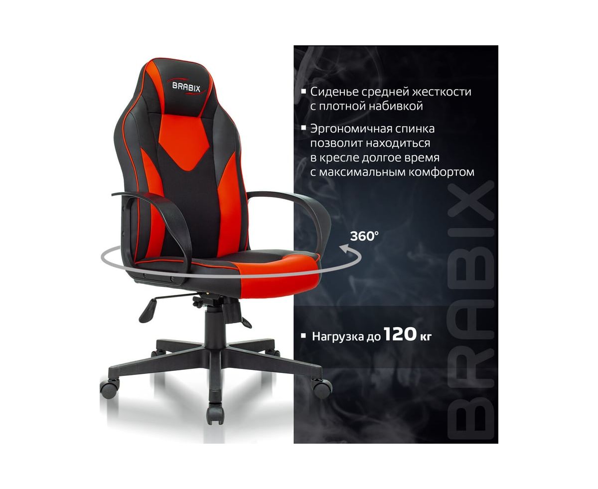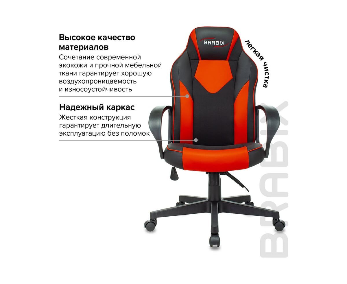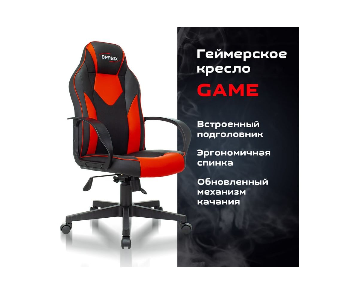 Компьютерное кресло BRABIX Game GM-017, экокожа/ткань, черное/красное 532642 с плотной набивкой и вниманием к деталям. Спортивный дизайн серии Alpha подчеркивает принадлежность к особой касте компьютерных кресел.