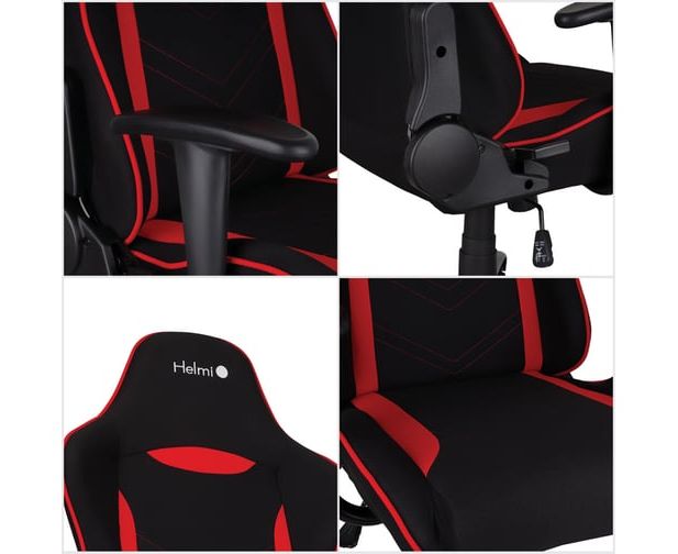 Кресло игровое HELMI Winner 306177 на колесиках, ткань, черный/красный