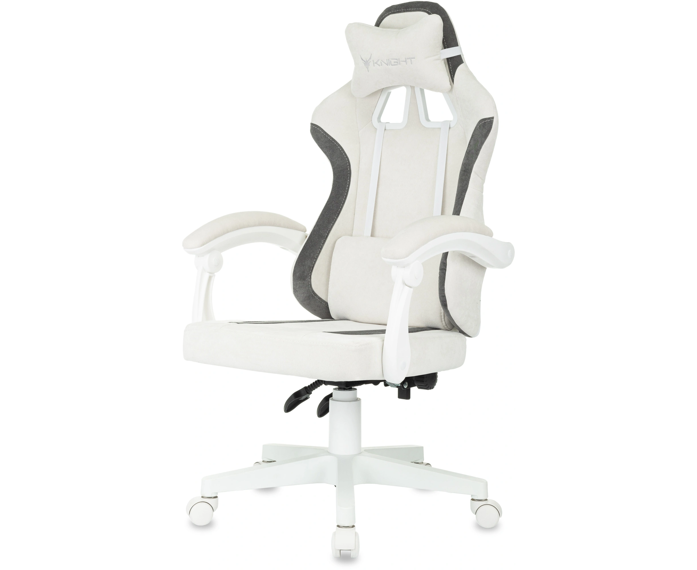 Кресло игровое KNIGHT Wolf WH WG на колесиках, ткань, белый/серый