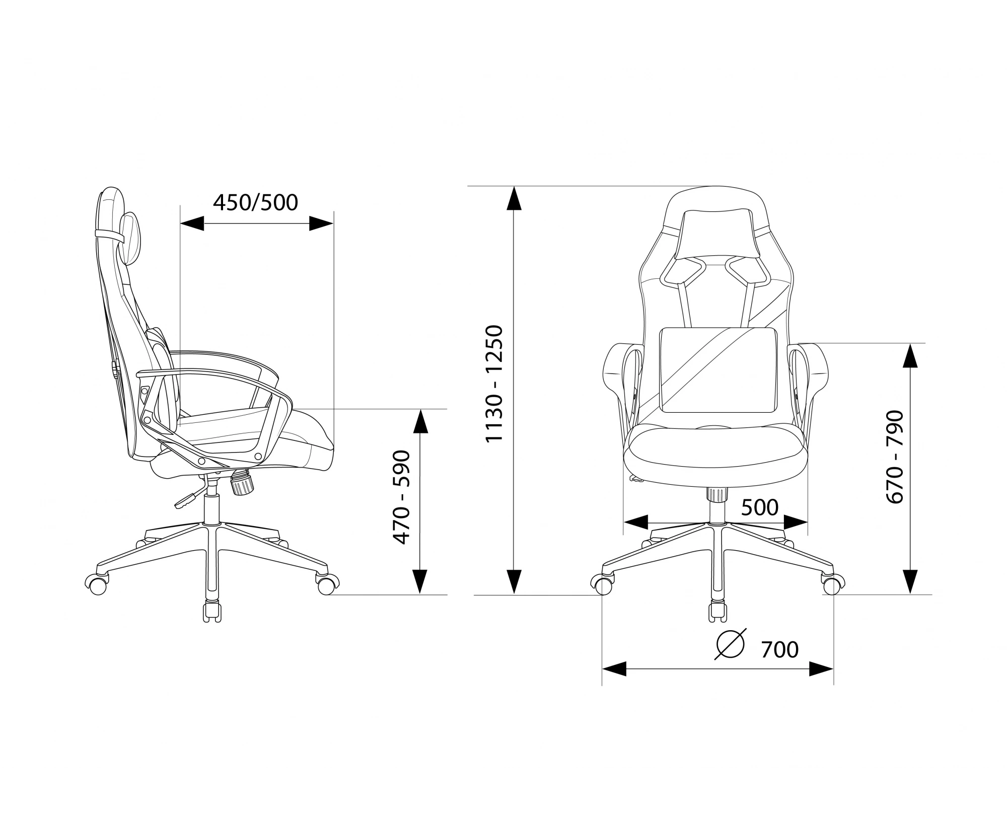 Высота с подлокотниками MIN
