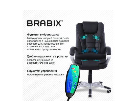 Офисное кресло BRABIX "Comfort MS-003" – идеальное решение для тех, кто ценит комфорт и функциональность. Это кресло компьютерное с 6 массажными модулями превращает рабочий день в удовольствие, обеспечивая восстановительный массаж прямо на рабочем месте. Изготовленное из качественной экокожи, кресло черного цвета гармонично впишется в любой интерьер, будь то офис или домашний кабинет.