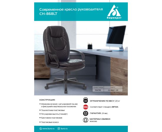 Кресло руководителя Бюрократ CH-868LT/#B черный искусственная кожа