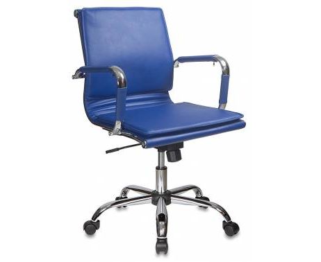 Кресло руководителя Бюрократ CH-993-LOW/BLUE низкая спинка синий искусственная кожа крестовина хром