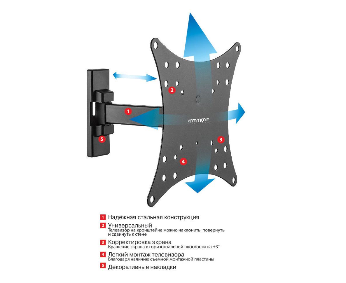 20"-43" Кронштейн Arm media MARS-3 Наклонно-поворотный черный макс 20 кг, Vesa 200x200