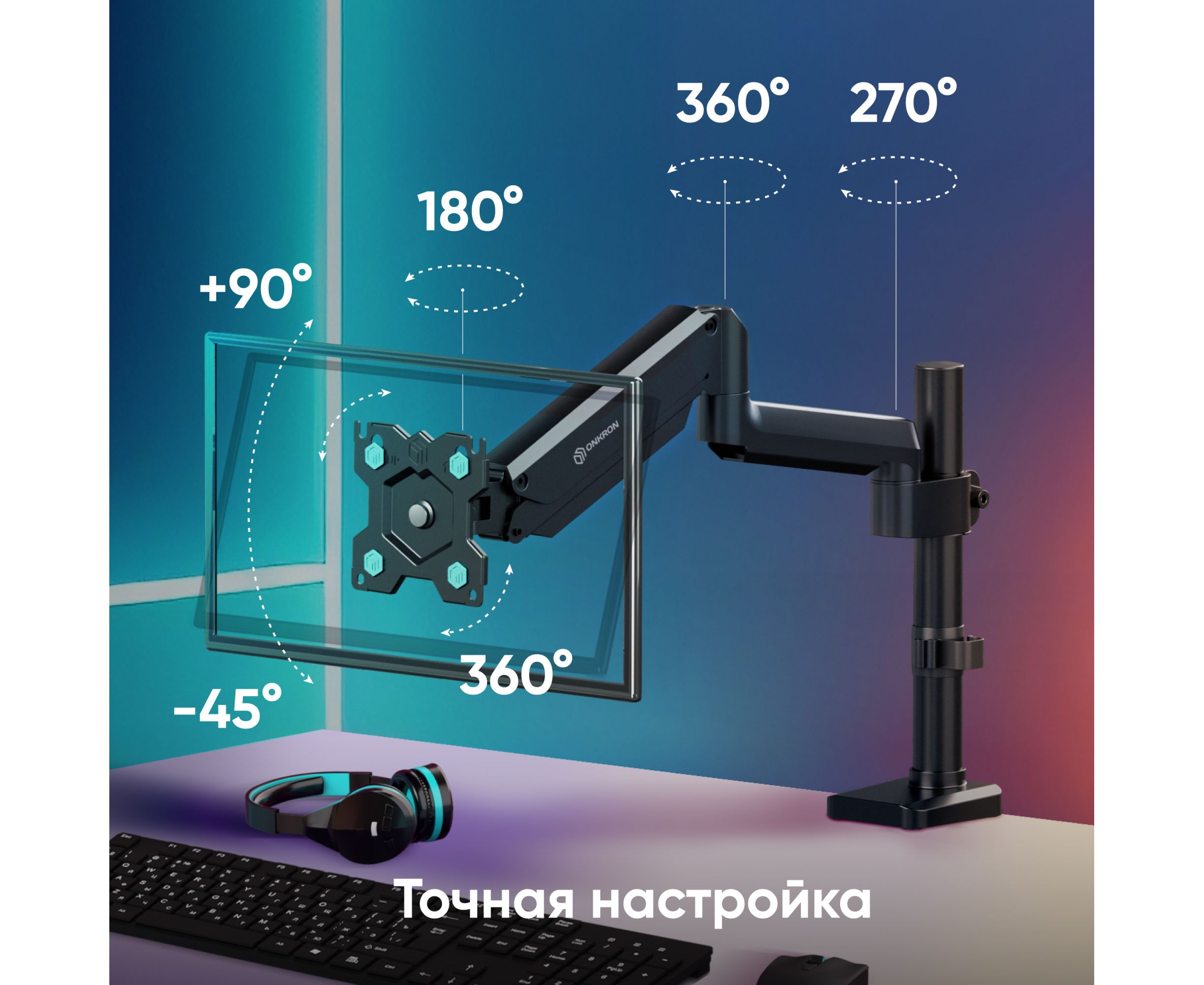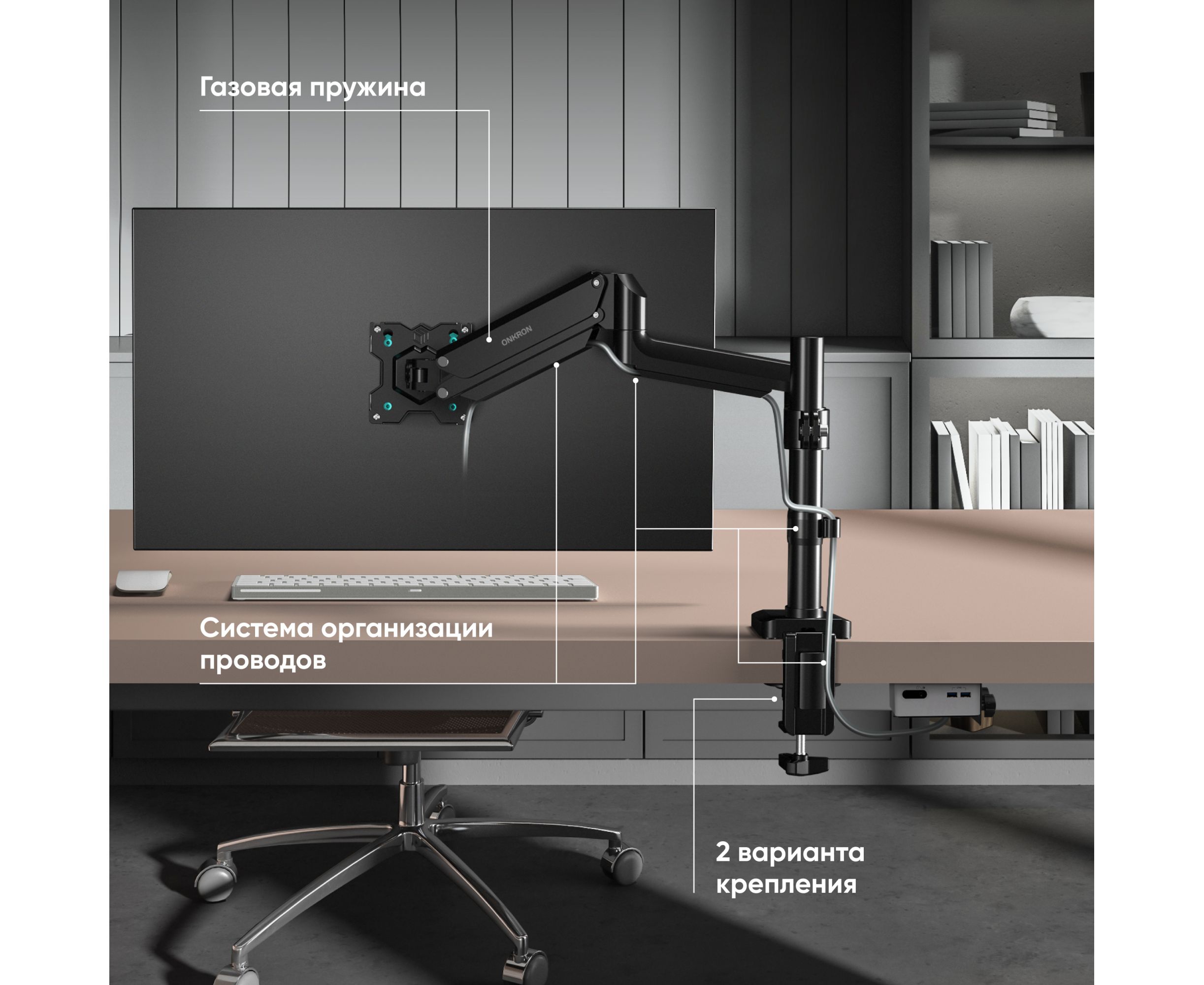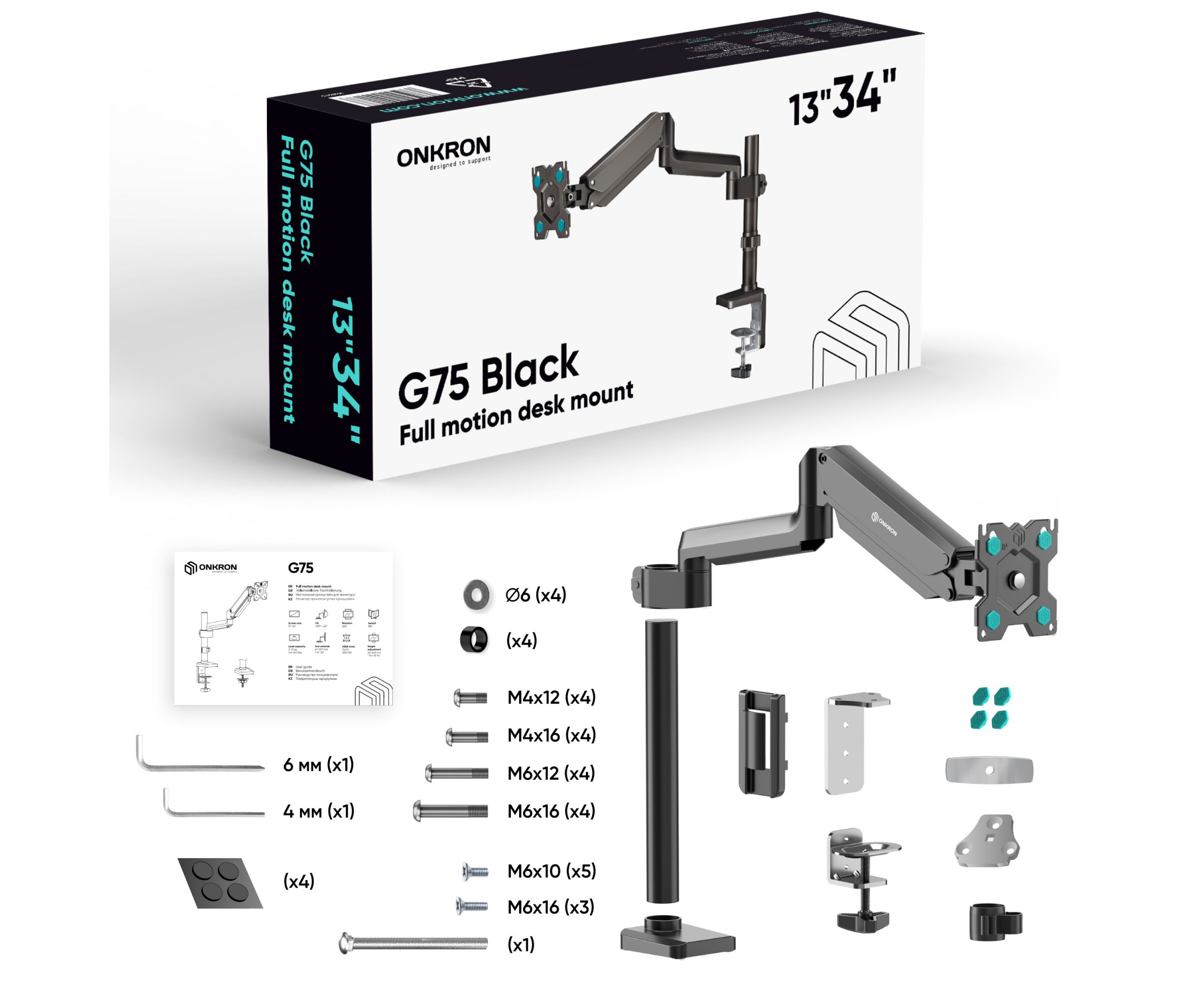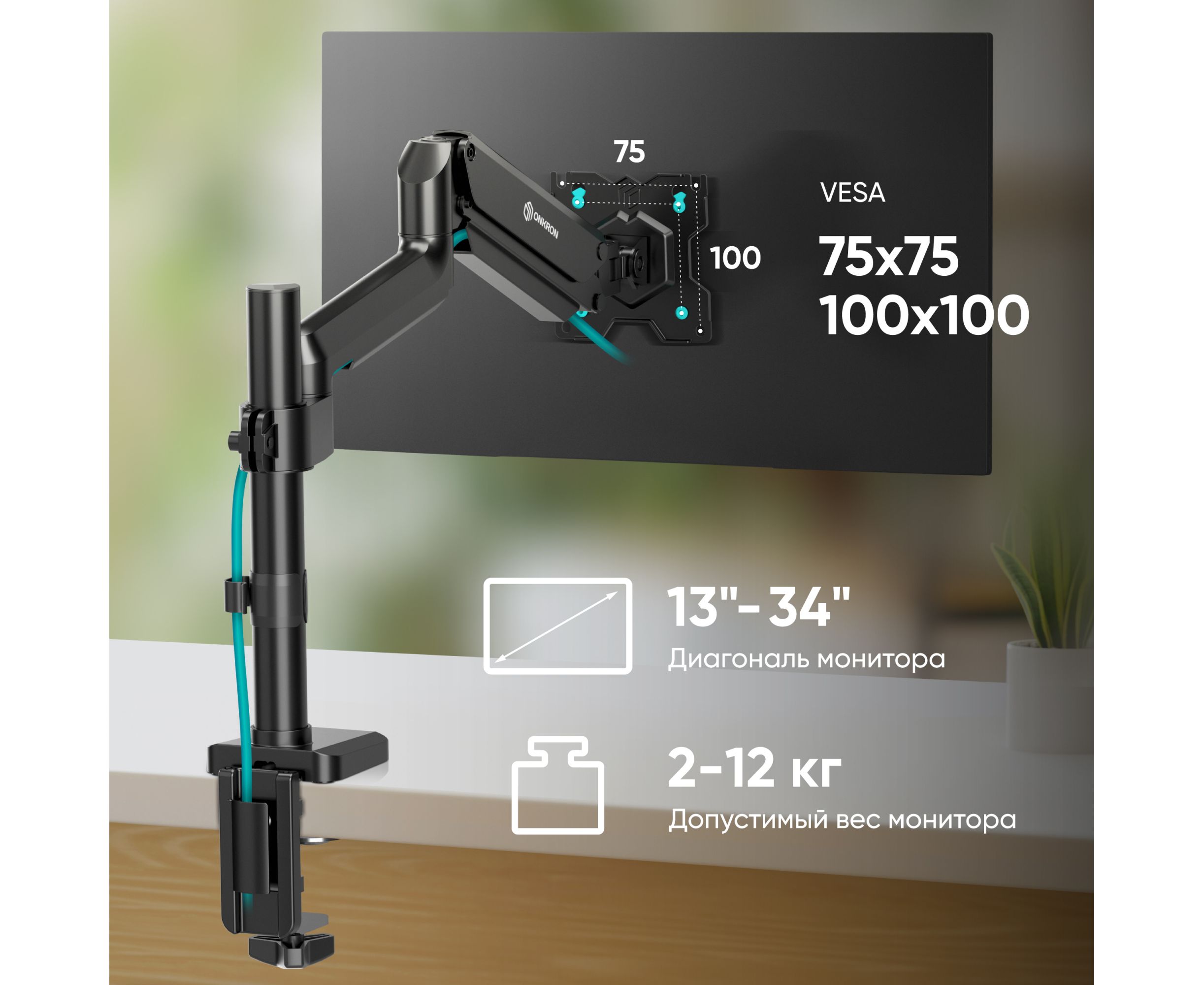 Кронштейн для монитора ONKRON G75 13"-34" настольный, чёрный