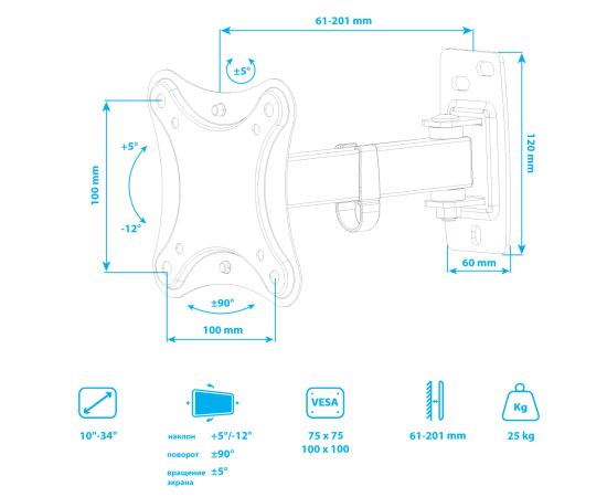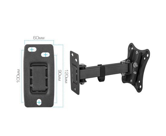 Универсальная система крепления, Легкий монтаж при помощи съемной монтажной пластины, Вращение экрана уникальная возможность вращения экрана на ±5° относительно стены, Надежная стальная конструкция максимальная нагрузка до 25 кг