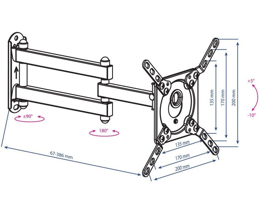 15"-42" Кронштейн Kromax DIX-14 Наклонно-поворотный, черный до20кг Vesa 200x200