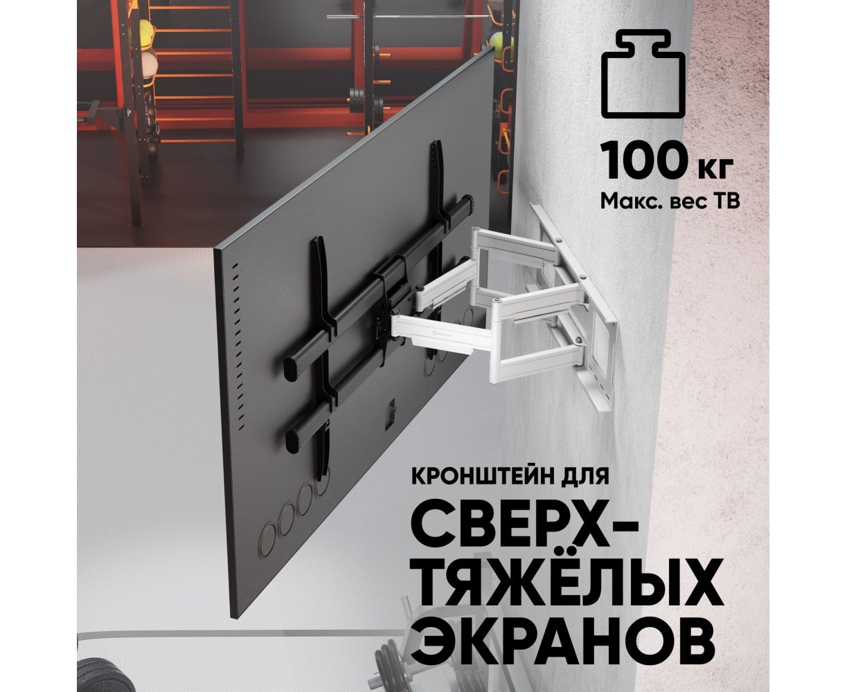 Кронштейн ONKRON M10-BW чёрно-белый Для экранов с диагональю 42"-120" наклонно-поворотный, макс. нагрузка 100кг