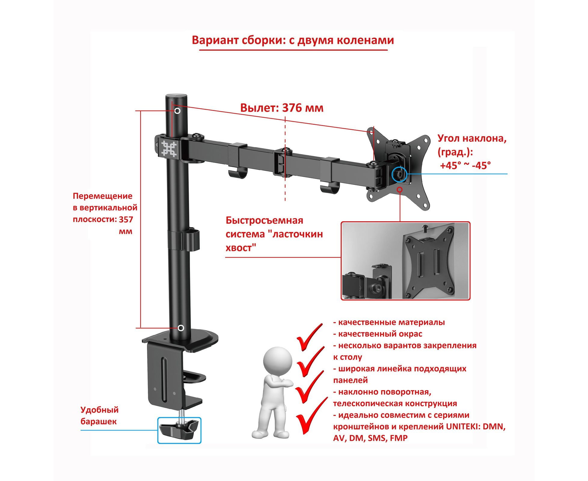 Наклонно-поворотный кронштейн-крепление со струбциной UNITEKI FMT61 отвечает высочайшим стандартам качества.