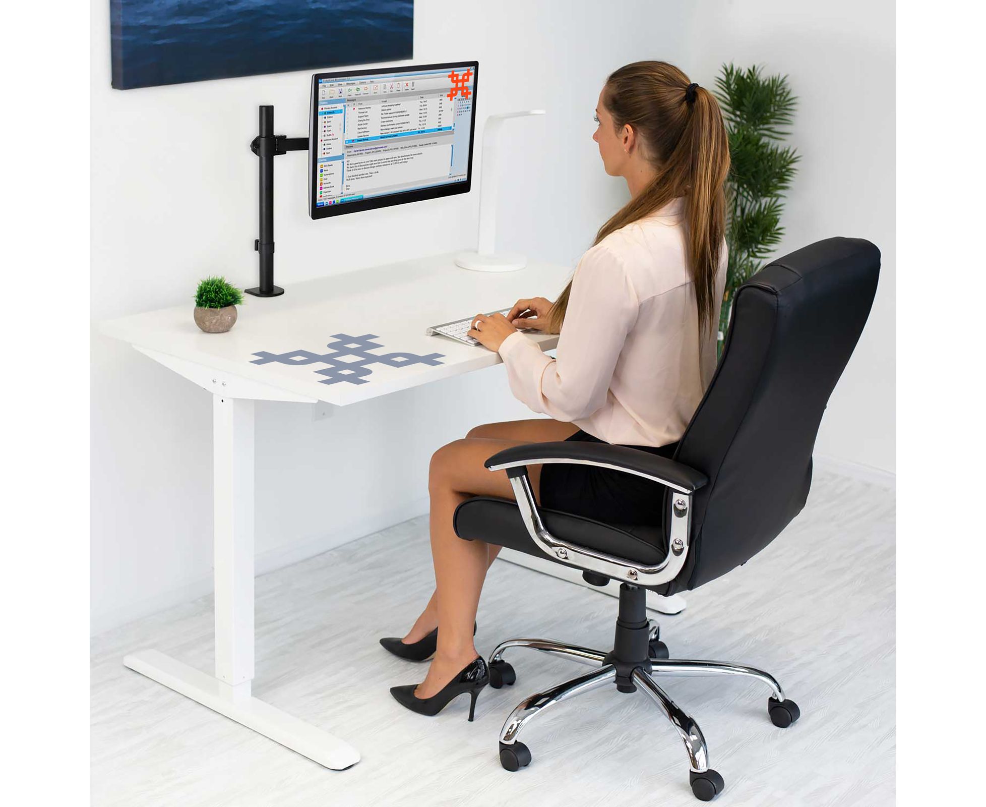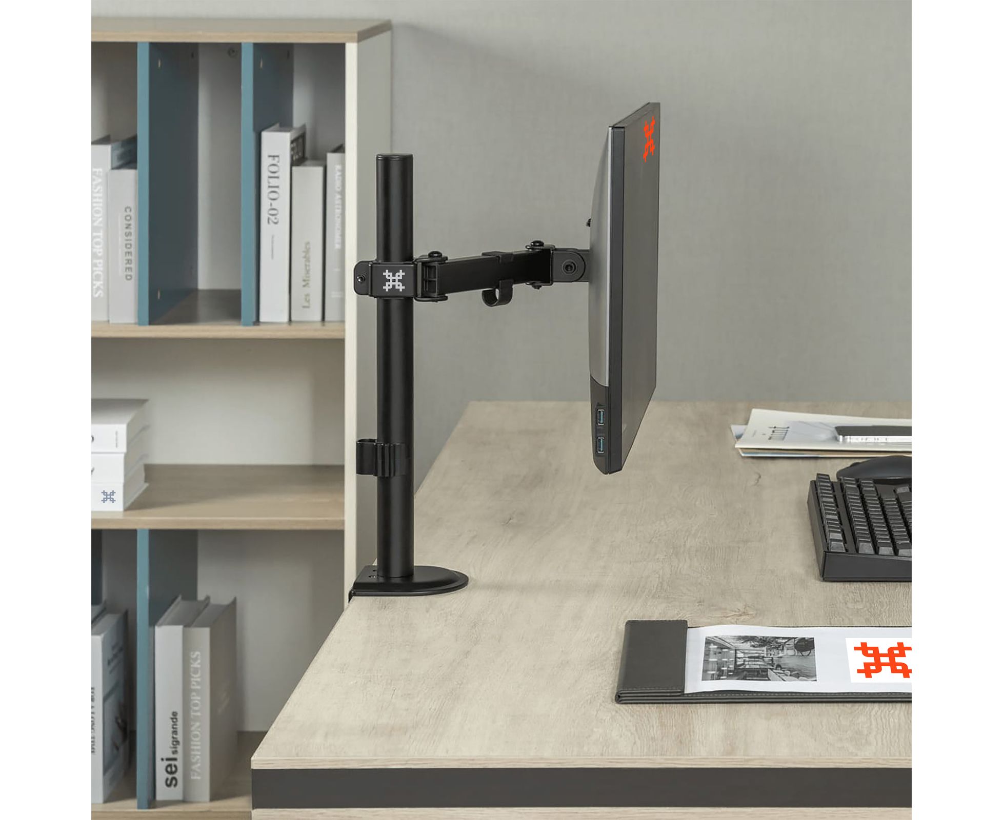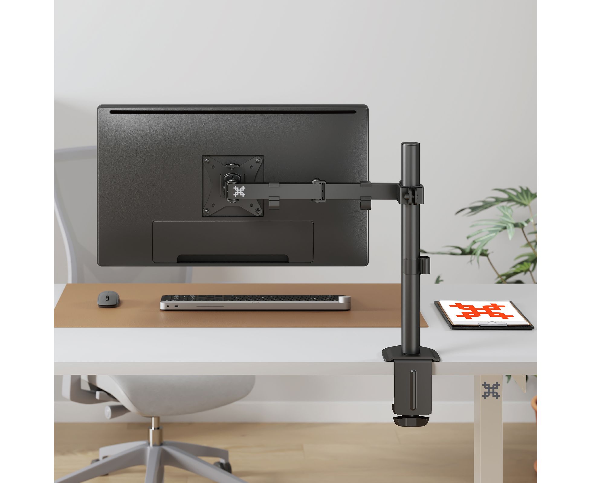 Вы сможете повернуть монитор и изменить расстояние по высоте на трубе лёгким движением руки, при этом монитор зафиксируется в настроенном положении.