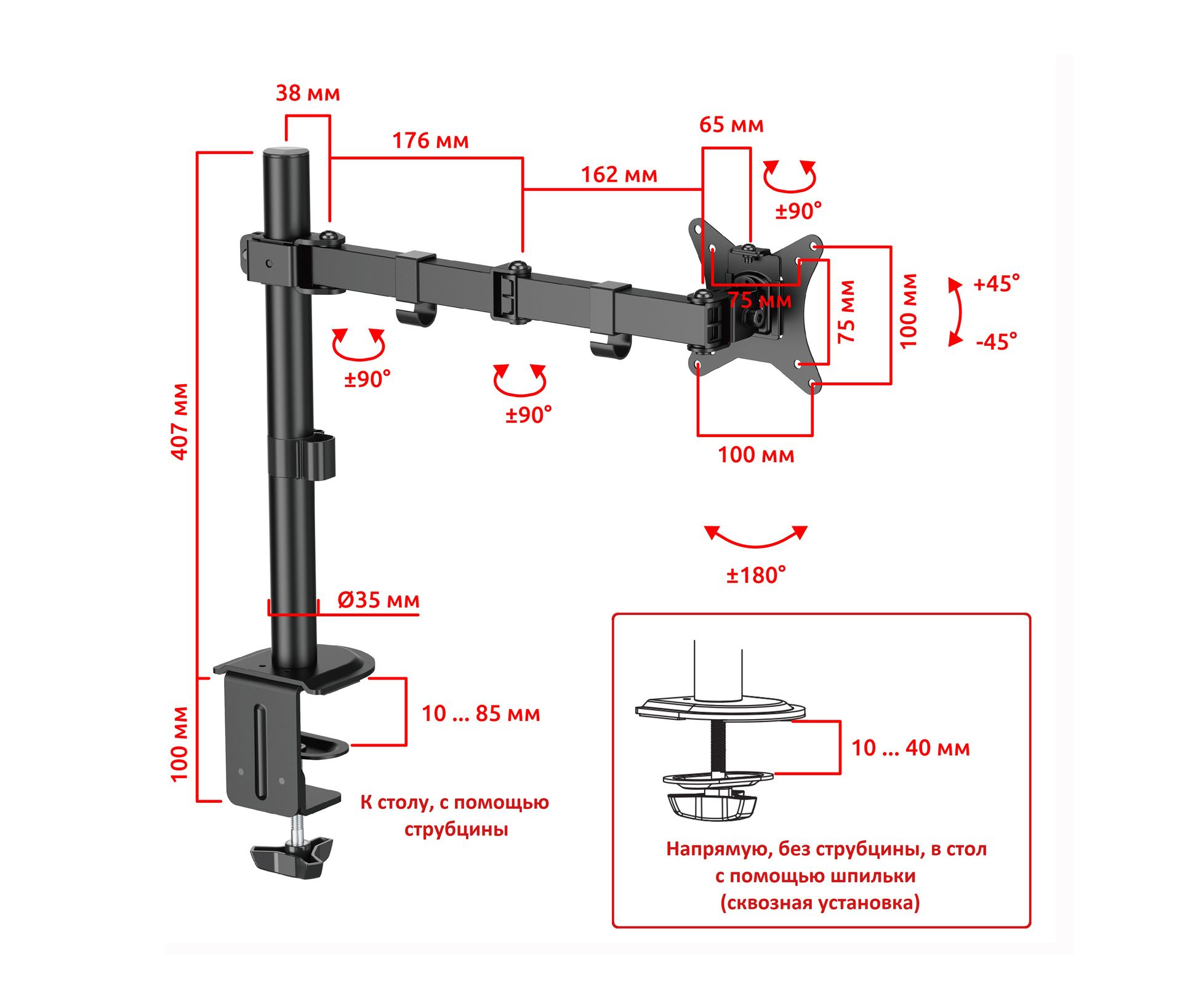 Тип кронштейна: Настольный со струбциной для монитора