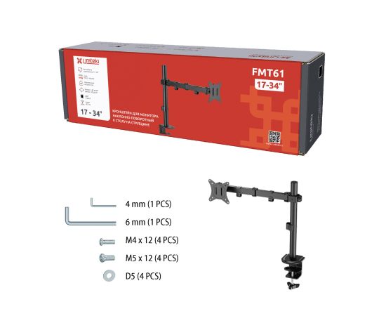 Кронштейн UNITEKI FMT61 подходит для всех мониторов, диагональю от 17 до 34 дюймов (см.: 43 ~ 86,36) и весом до 9 кг.