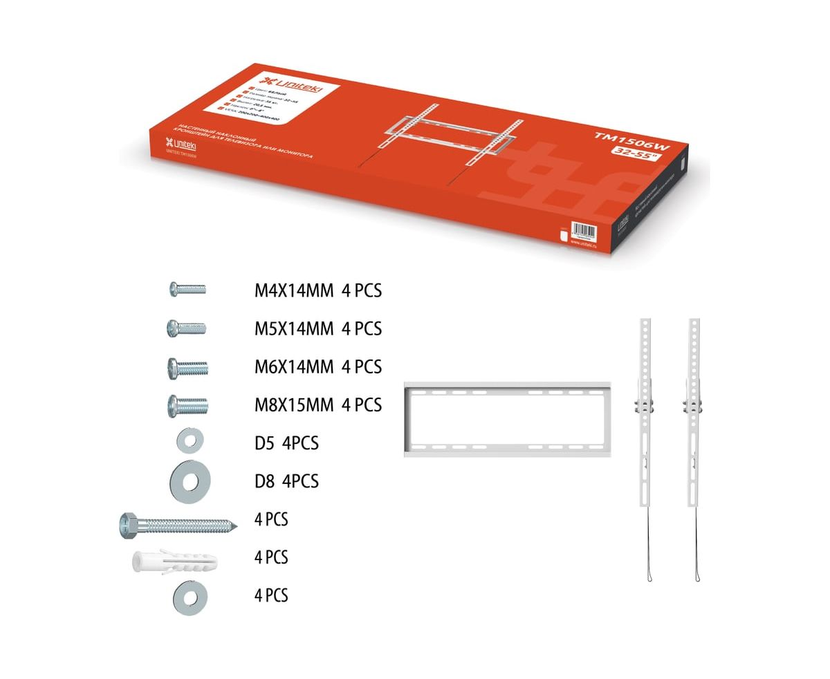 Настенный наклонный кронштейн UNITEKI TM1506W предназначен для телевизоров с диагональю от 32 до 55 дюймов.