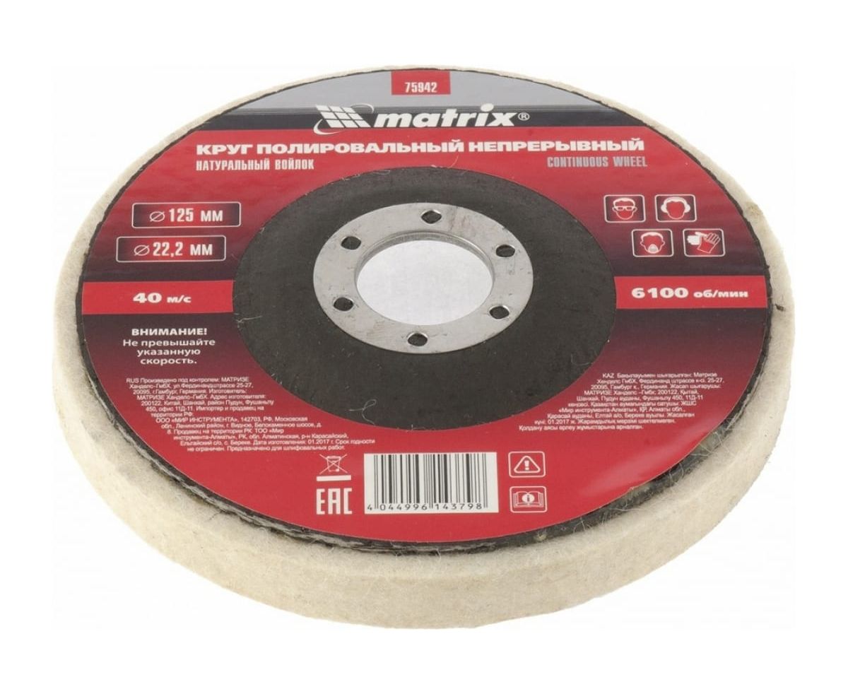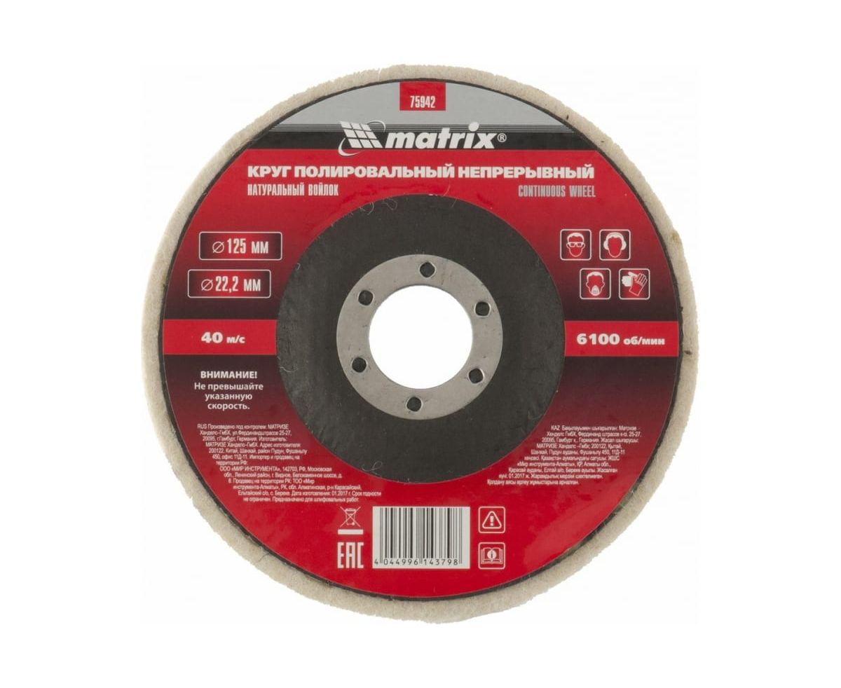 Круг полировальный MATRIX 75942 непрерывный из натурального войлока 125 х 22,2 мм