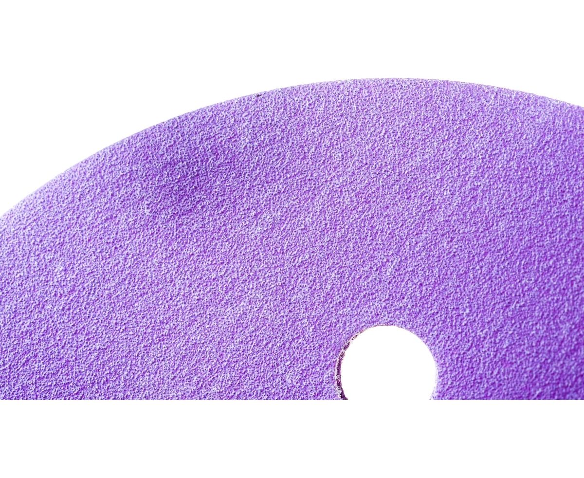 Круг шлифовальный Purple PP627 (125 мм; 8 отверстий; Р180; 100 шт) Hanko PP627.125.8.0180 на бумажной основе плотности D, предназначен для обработки поверхности «по-сухому». Закаленный оксид алюминия идеально подходит для агрессивных работ, в том числе зачистки краски до чистого металла, формирования и шлифования зашпатлеванных участков и пластиковых деталей. Содержание в бумаге латексной пропитки делает абразив мягким и эластичным. Стеаратовое покрытие предотвращает засорение и образование комков на поверхности абразива.