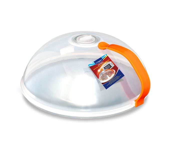 Крышка для СВЧ "Topperr", изготовленная из прочного цветного пластика, оснащена ручкой. В крышке имеется небольшое отверстие для выпуска пара.
