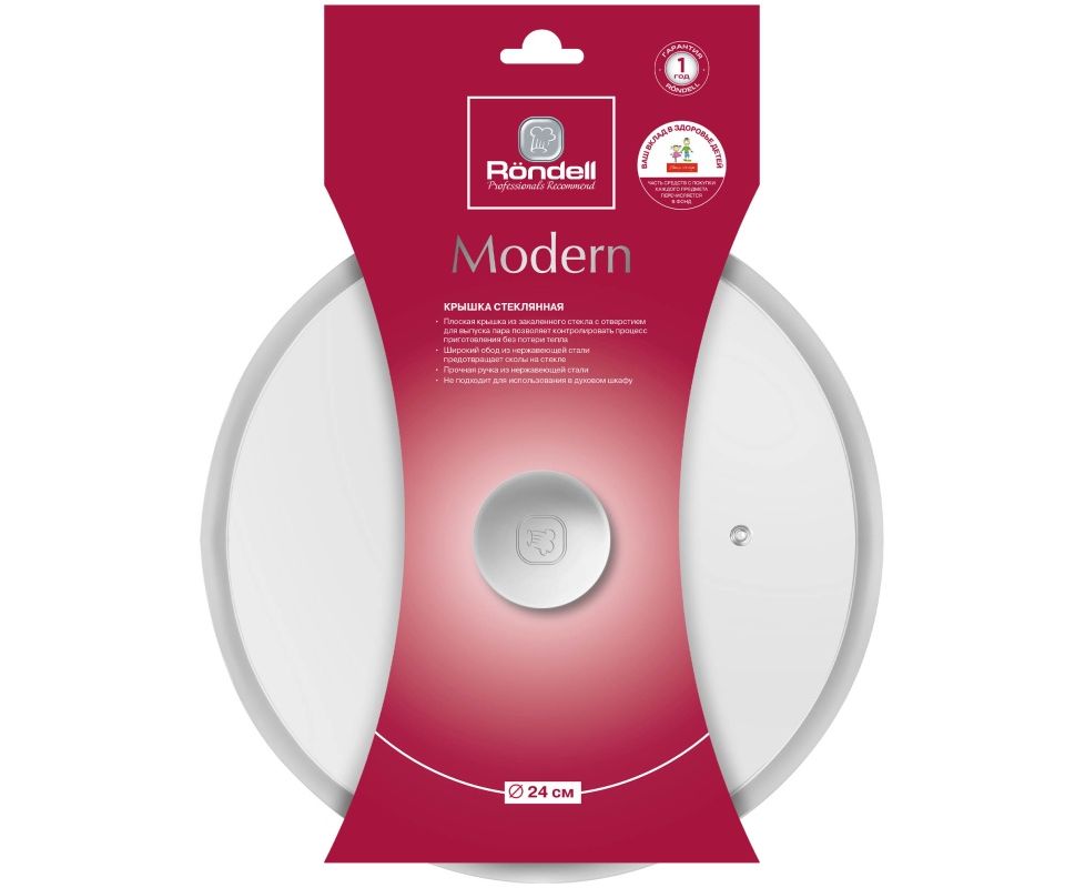 Крышка Rondell Modern RDA-1738 d-24см крыш.прозрачный руч.стальная