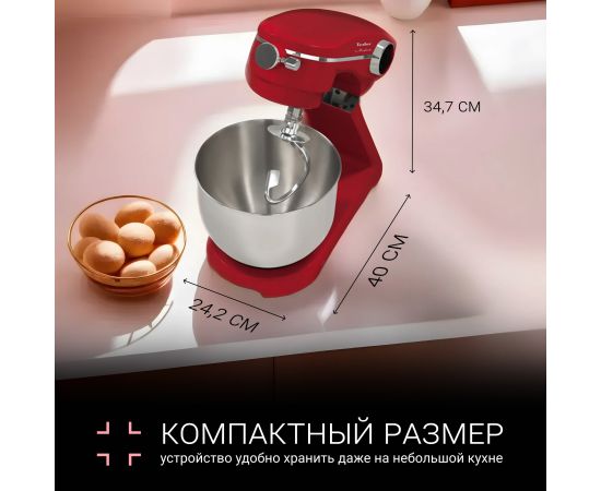 С помощью идущих комплекте аксессуаров вы сможете быстро и эффективно соединять различные ингредиенты. Крюк для замешивания предназначен для приготовления густого теста для пирогов, хлеба и другой выпечки. Насадка для перемешивания подойдёт для смесей средней вязкости, таких как овощные пюре и соусы. Венчик будет полезен для взбивания яиц, сливок, кремов, чтобы придать им воздушность и объем. Конструкция планетарного миксера позволяет взбить венчиком даже 1 яйцо, чтобы приготовить небольшую порцию. Все насадки изготовлены из прочной нержавеющей стали.