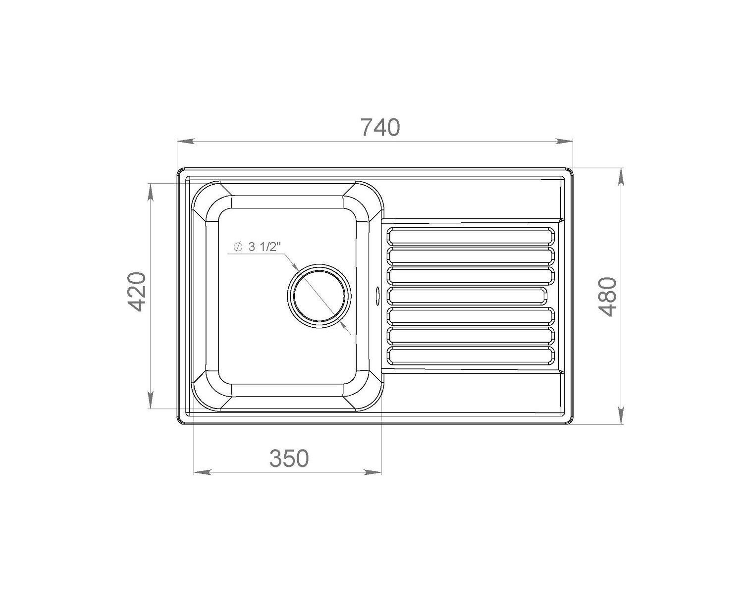 Реверсивная мойка (Отверстие высверливается в зависимости от расположения крыла)
