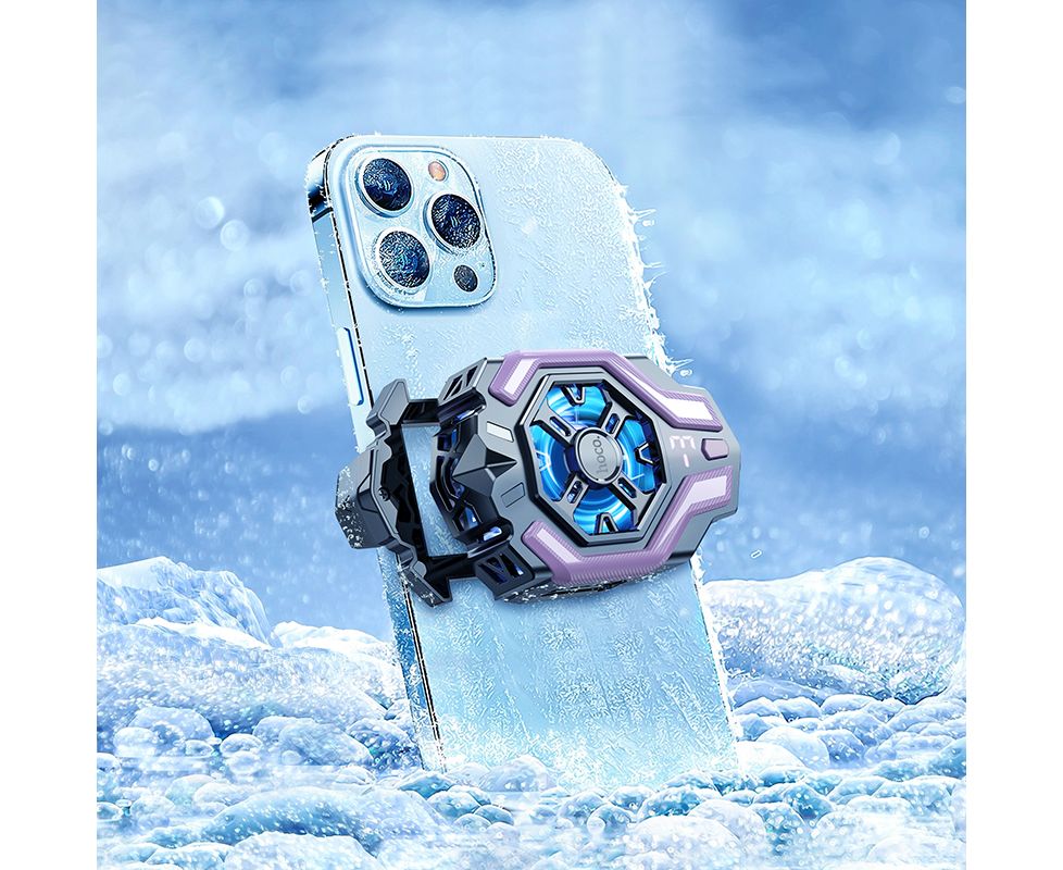 Кулер игровой (охлаждение) для смартфонов HOCO GM26 Ambitious cooling mobile phone fan (черный/фиолетовый)