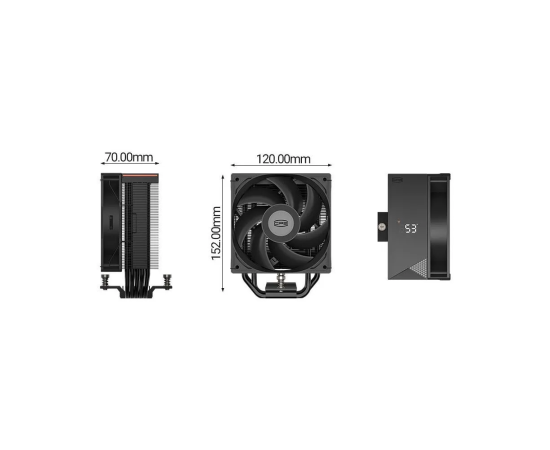 Кулер PcCooler RT500 Digital BK (240W, 4-pin PWM, LED temp., 152mm, Al/Cu, 5x6mm, 1x120mm, 73.32CFM, 34.9dBA, 2200RPM)