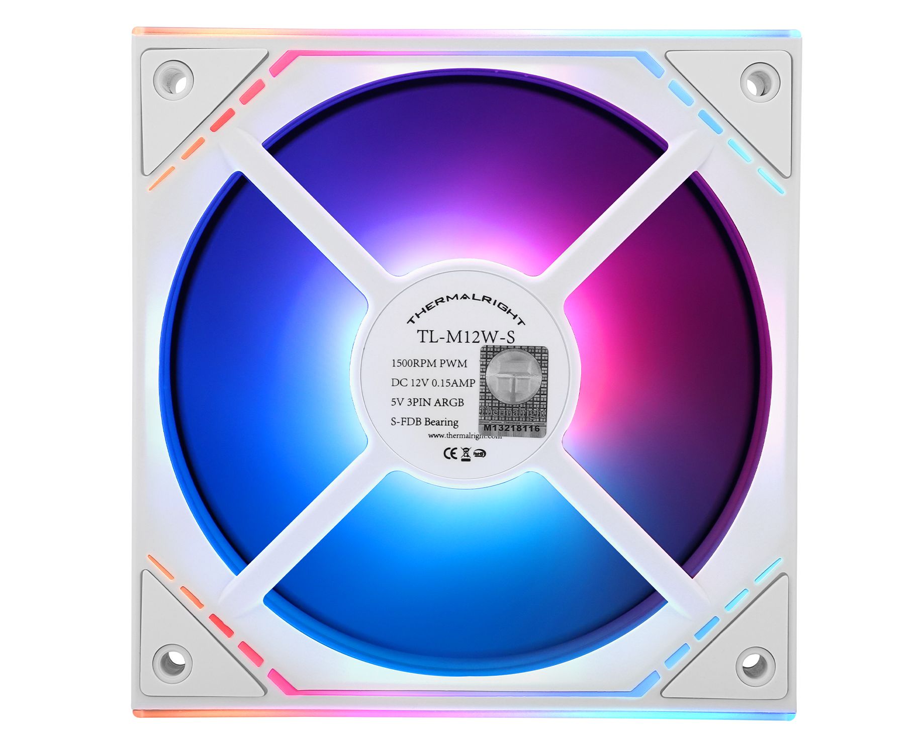 Кулер Thermalright TL-M12W-S (120x124x25mm, 4-pin PWM, ARGB, 47.6CFM, 23.2dBA, 1500RPM, White)