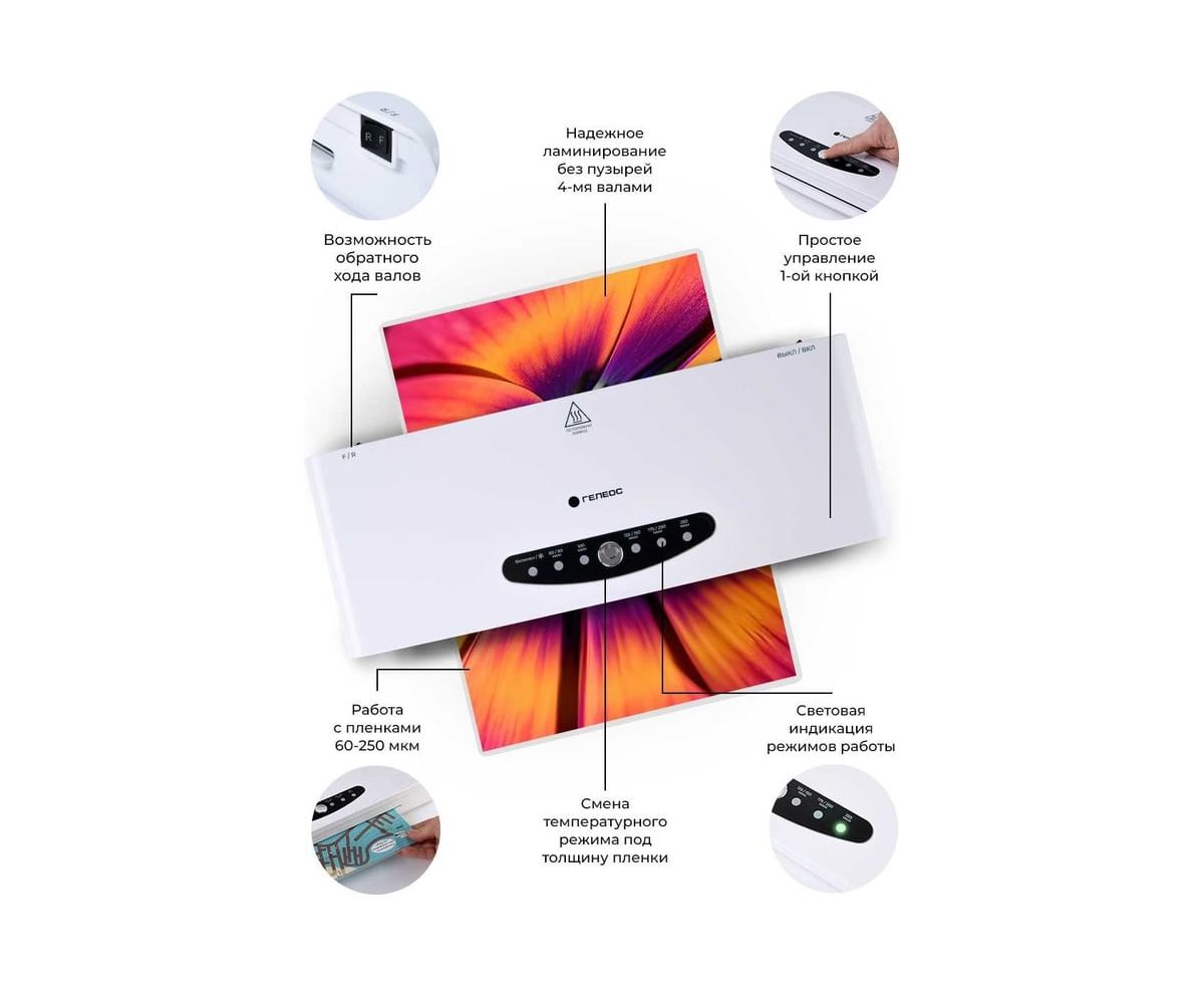 Ламинатор Гелеос ЛМ-А44В белый/черный