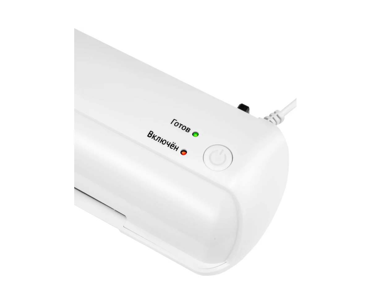 Корпус ламинатора выполнен из термоустойчивого пластика, что делает прибор легким. Прорезиненные ножки делают устройство более устойчивым и не дают скользить по столу во время работы.