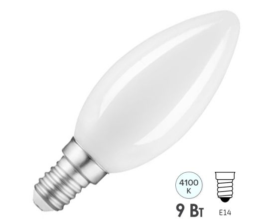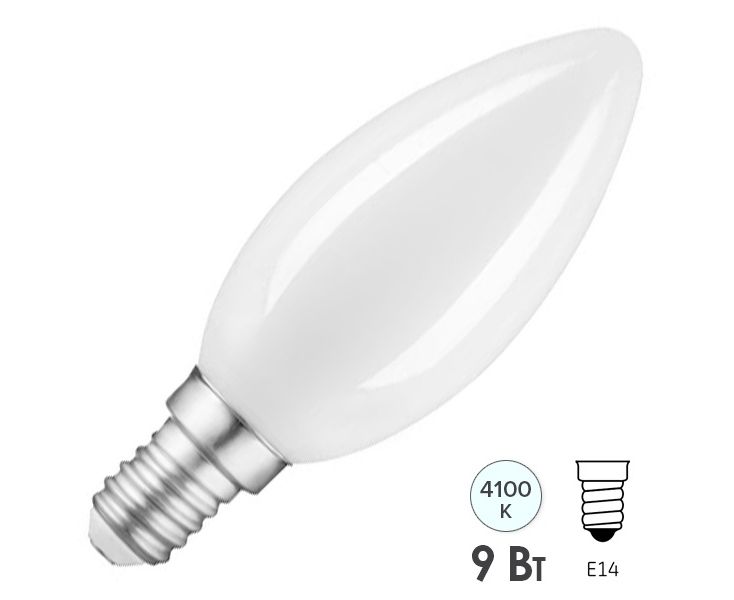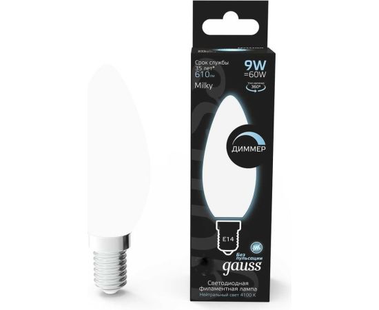 Технические характеристики Gauss Filament свеча, 9W, 610lm, 4100К, Е14, milky, LED 103201209-D