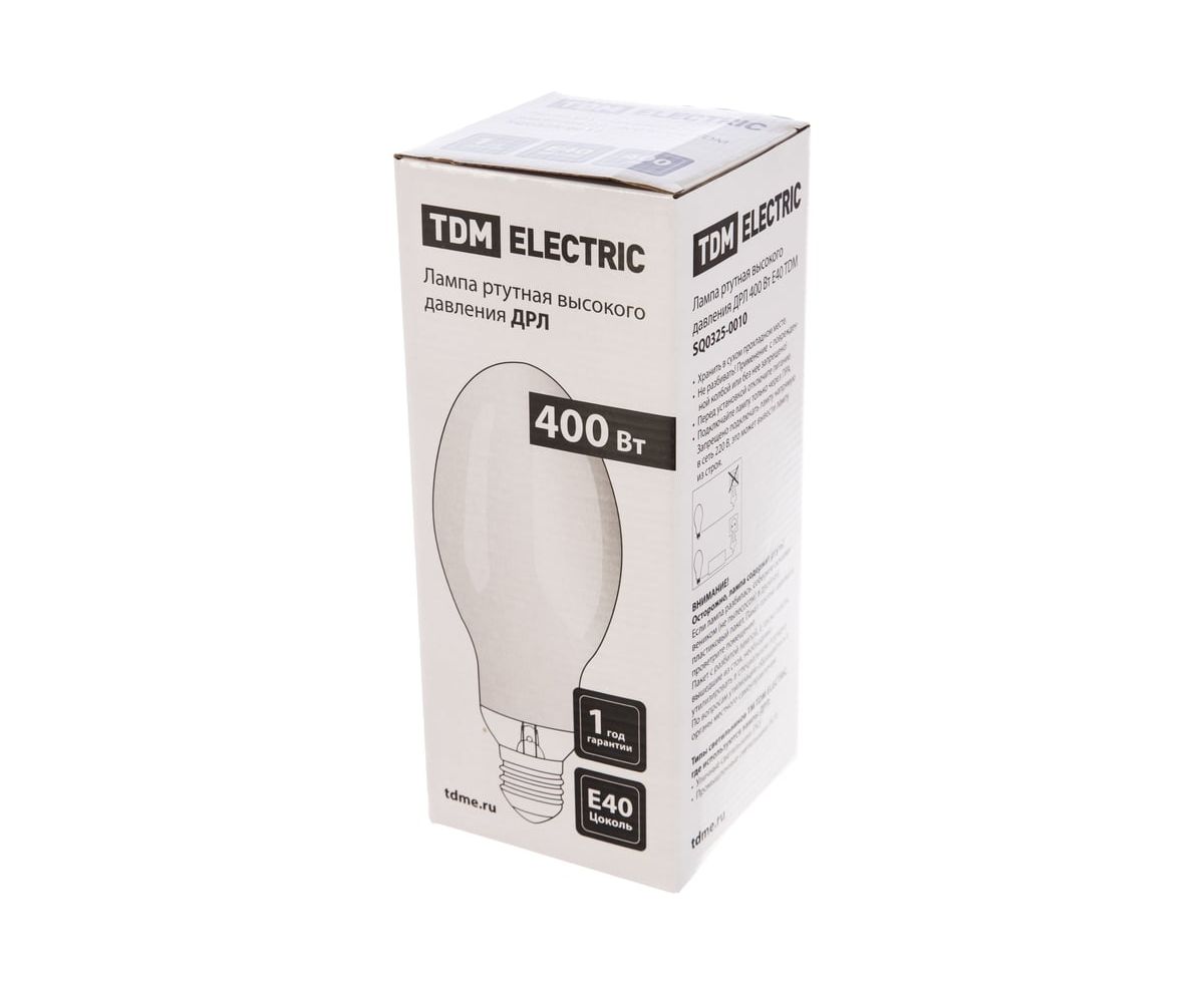 Ртутная лампа высокого давления TDM ДРЛ 400 Вт Е40 SQ0325-0010 предназначена для создания наружного освещения, а также для освещения промышленных предприятий и производственных площадок. Конструкция состоит из колбы, внутренняя поверхность которой покрыта люминофором, а сама колба заполнена азотом, а также кварцевой горелки и цоколя Е40. Изделие излучает свет мощностью 400 Вт.
