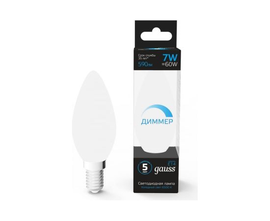 Диммируемая лампа Gauss Свеча 7W 590lm 6500К E14 LED 1/10/100 103101307-D - надежный источник освещения высокого качества.