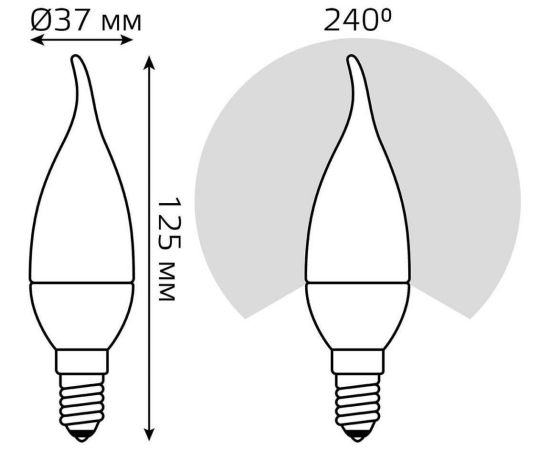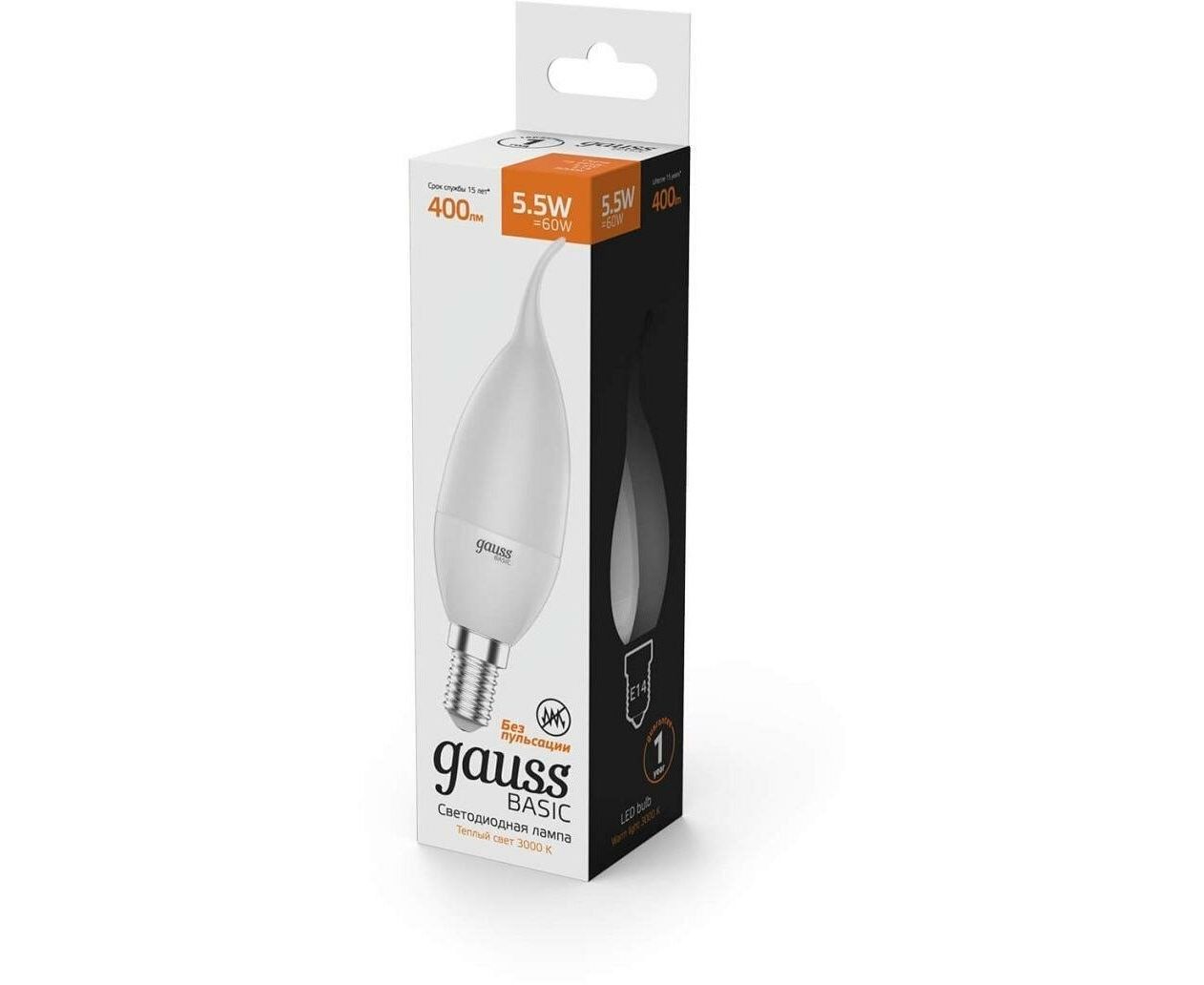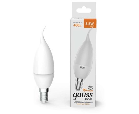 Технические характеристики Gauss Basic свеча на ветру 5,5W, 400lm, 3000K, E14, LED 1034116