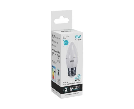 Технические характеристики Gauss LED Elementary Candle 8W E27 4100K 33228