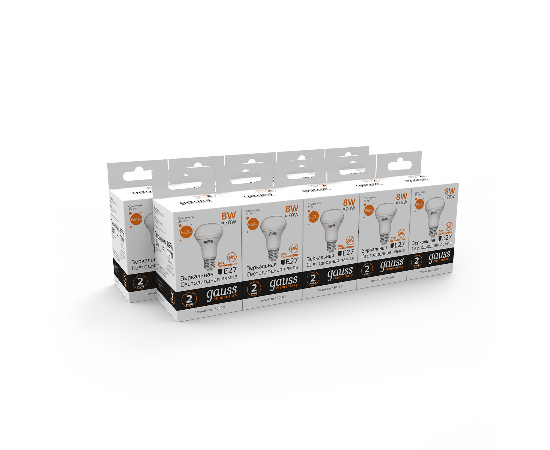 Лампа светодиодная GAUSS Elementary R63 8W 650lm 3000K Е27 1/10/50