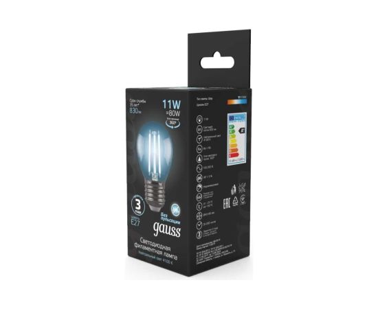 Технические характеристики Gauss LED Filament Шар E27 11W 750lm 4100K 105802211