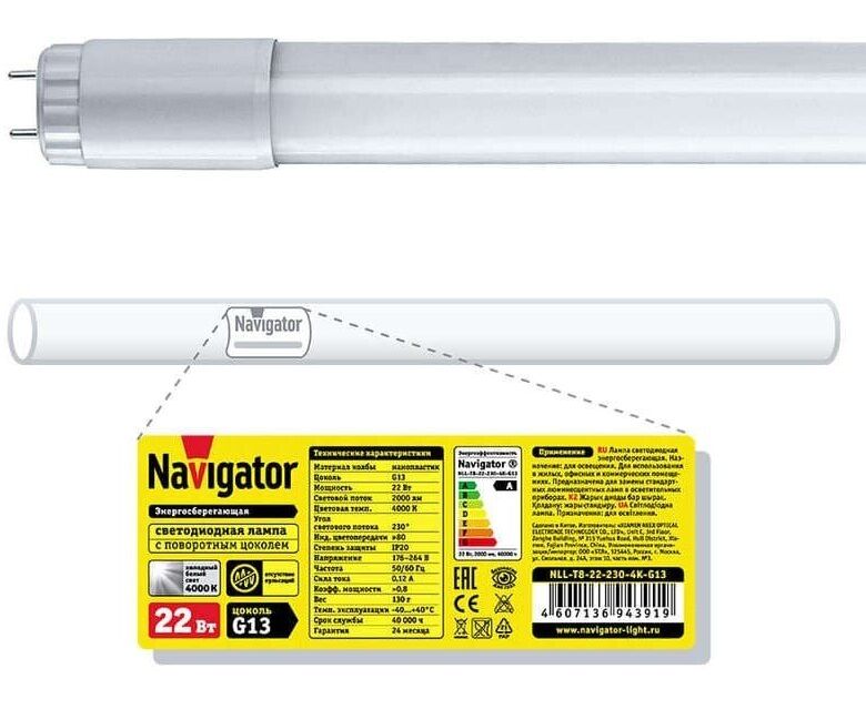 Технические характеристики Navigator 94 391 NLL-T8-22-230-4K-G13 22Вт G13 2000лм 170-260В 18312 245125