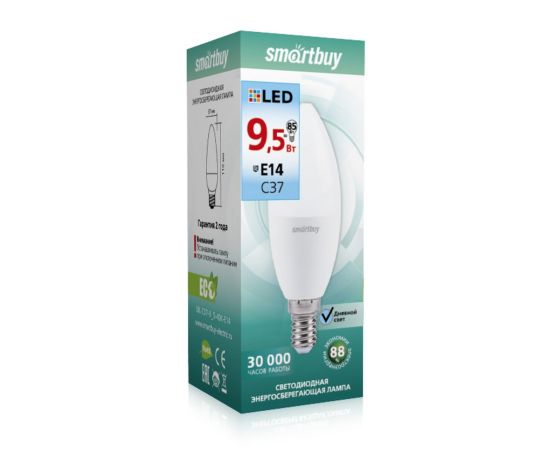 Лампа светодиодная SMARTBUY C37 9,5Вт 4000K E14 (свеча, нейтральный свет)