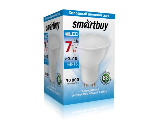 Лампа светодиодная SMARTBUY GU10 (MR16) 7Вт 220V 4000K (рефлекторная, нейтральный свет) (1/10/50)