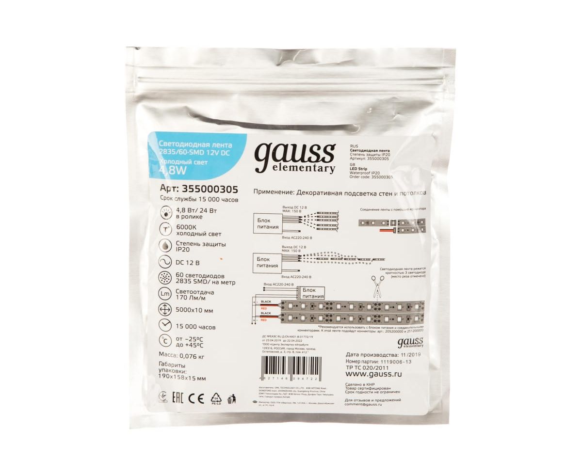 Лента светодиодная Gauss Elementary 355000305 5м
