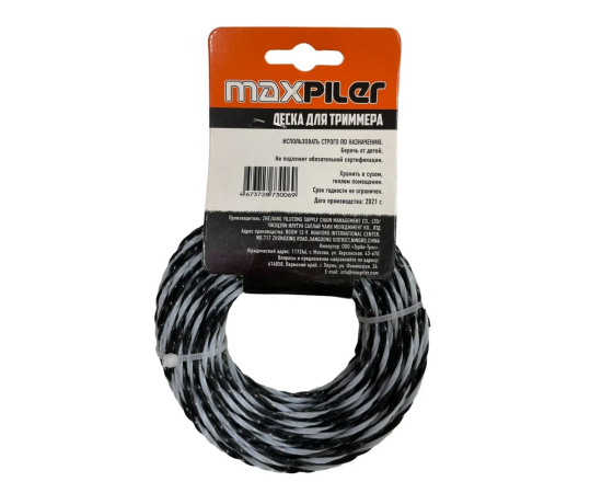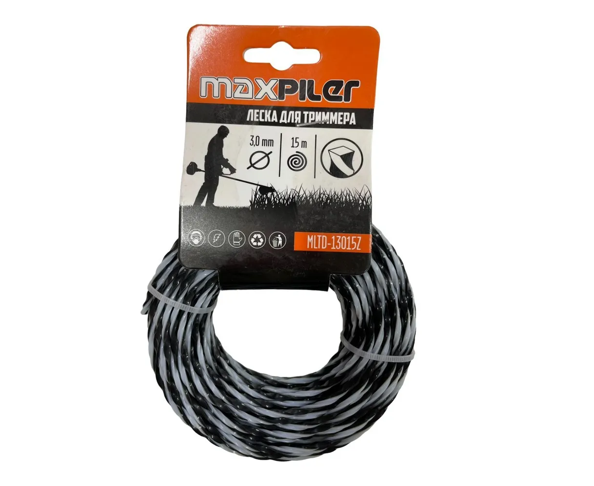 Леска для триммера Maxpiler MLTD-13015Z 3.0MM*15M, квадрат крученый черно-белая