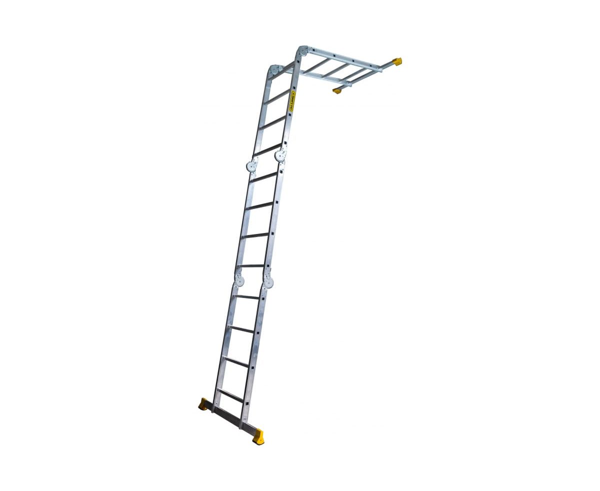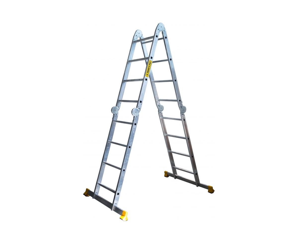 Лестница-трансформер Алюмет 4х4 TW1 444 подходит для строительства и ремонта на профессиональном уровне, а также для бытовых работ.