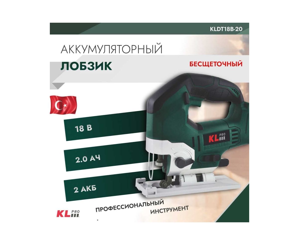 Профессиональный лобзик бесщеточный KLPRO KLDT18B-20 (18В, Li-ion-2шт, 2.0Ач, патрубок для пылесоса, полотна (дерево/металл, З/У , кейс)