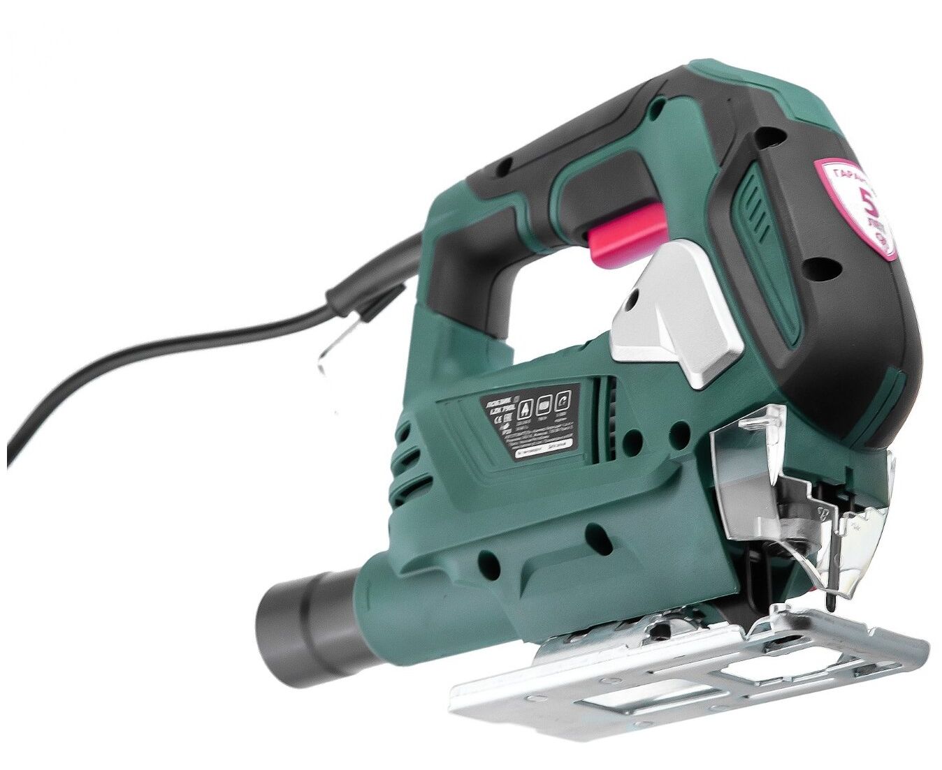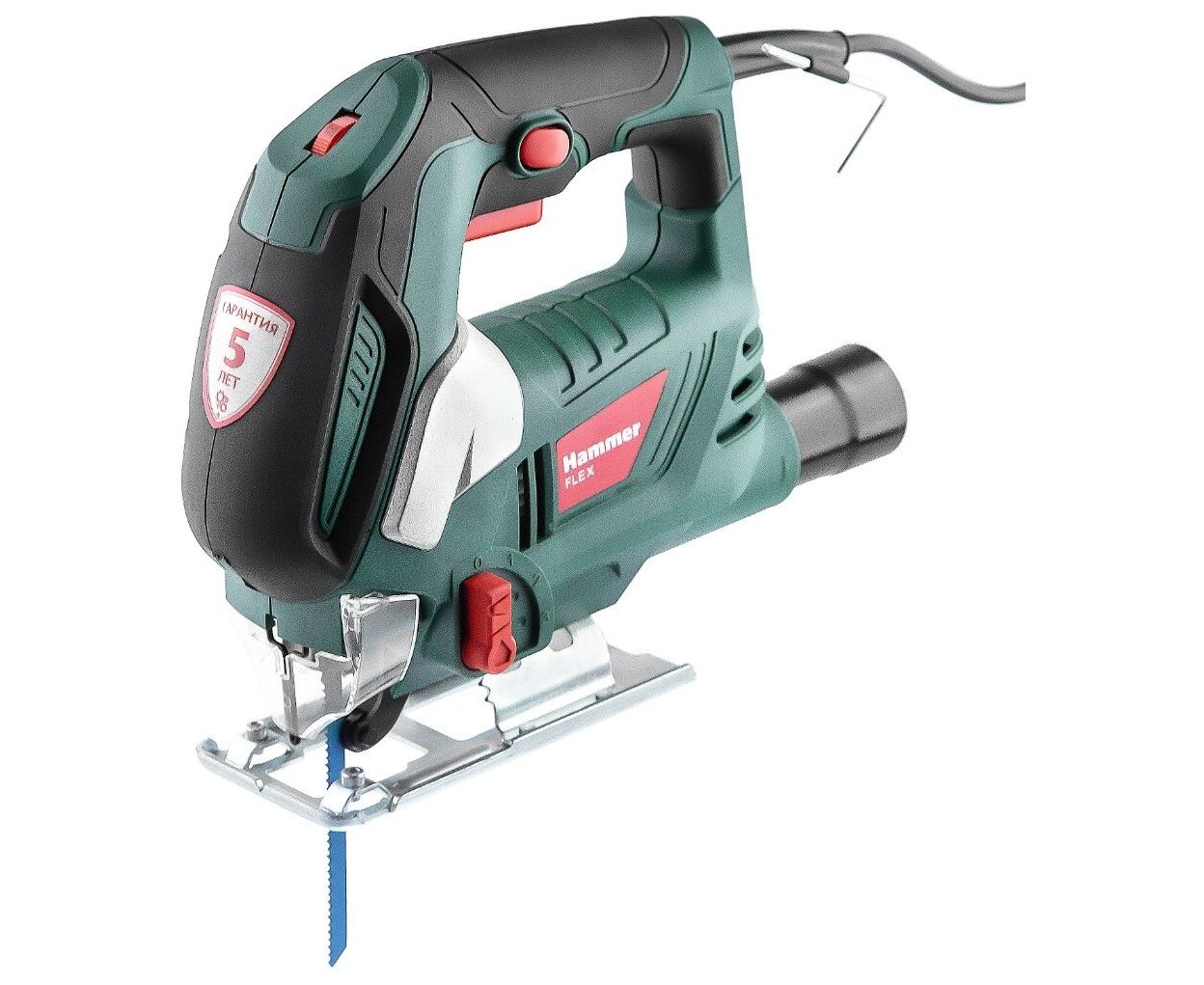 быстрозажимное крепление пилки, возможность подключения пылесоса, защитный щиток, обрезиненная рукоятка, подсветка, регулировка наклона подошвы без инструмента